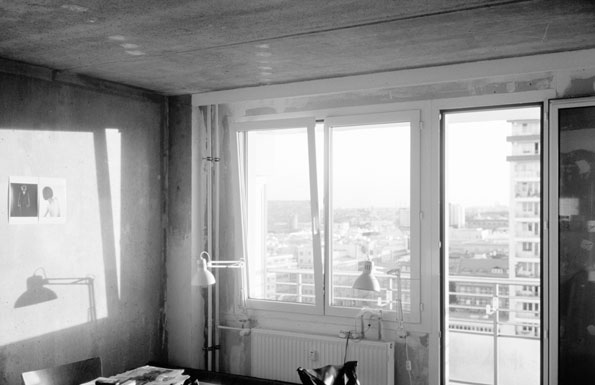 Wohnung, Berlin Mitte ohne Tapete, mit der rohen Betonoberfläche der Elementplatten