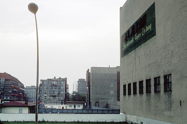 Dies ist sicher millionenfach fotografiert worden. Der Blick von der Aussichtsterrasse beim Checkpoint Charlie, Richtung Friedrichstrasse.