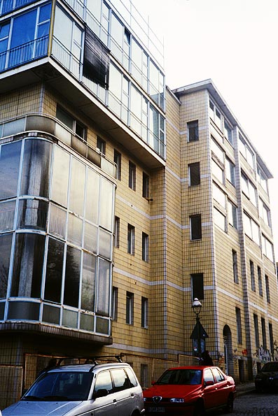 Der Architekt war kühn genug, die Tür mit dem Rundbogen zu erhalten, auch die alten Fensterprofile. Inzwischen geht alles gleichsam aus dem Leim, die Rahmen der opak verglasten Holzfenster verfaulen, die Stahlprofile verrosten, die Verkleidungen der Auskragung fallen auseinander. Ich weiss nicht, was mit dem Haus geschieht. Ich hoffe, dass die Eigentümer angesichts der Räume im Innern nicht die alte Villa rückbauen wollen, wenn sich gezeigt hat, was die Sanierung der Statik kostet. Bestenfalls wird das Haus erneut transformiert, nicht im Sinne der alten Villa, nicht im Sinne des Umbaus zur Klinik.