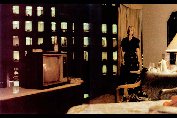 Ein anderes Bild stammt aus einem Film von Wim Wenders: Paris, Texas. Das ist der Innenraum eines Hotels. Die Vorhänge sind offen, die Sicht aus dem Hotel in die Stadt ist ein Teil der Wohnung. Es handelt sich hier um einen Ort, an dem man sowohl in der Stadt drin ist und gleichzeitig auch in der Wohnung..