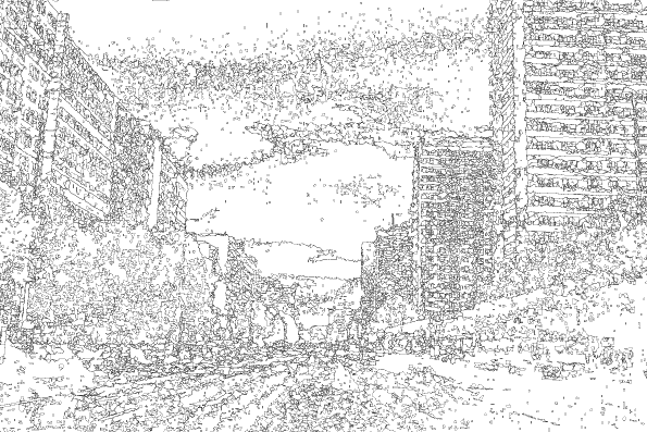 Eine Art Malen-nach-Zahlen-Experiment. Wir kennen einen Ort, ein Foto davon, das Muster, das entsteht, wenn man das Bild in Farbflächen zerlegt und entfärbt, es bewirkt eine Verfremdung des bekannten Ortes. Und so lassen sich Eigenschaften des Ortes ausblenden. Die primär erkennbaren Dinge verschwinden, und weisse Flecken lassen sich, nicht nur farblich, neu ergänzen. Gemäss des Carambole-Prinzips wird Raum für neue Vorstellungen geschaffen, und es stellt sich erneut die Frage: "Was, wie, könnte das sein?"