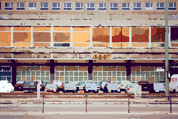 Auch dies ist ein mit einer ähnlichen Technik verfremdetes Bild eines Ortes in der Nähe, hier allerdings wurden die Farben hervorgehoben, herausgehoben. Ein Art Farbextraktion zur weiteren Verarbeitung.